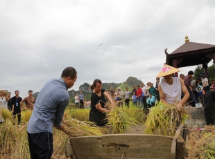 2024-09-239月22日,广西南丹县在芒场镇巴平村举行“学用千万工程 • 礼赞丰收中国”庆丰收活动。割稻谷比赛、打糍粑、水上抓鸭、抱南瓜比赛等活动趣味十足,引来不少游客参与体验。 收稻谷。 ...