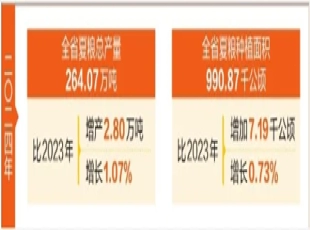 2024-07-237月17日,国家统计局云南调查总队发布数据显示:2024年全省夏粮总产量264.07万吨,比2023年增产2.80万吨,增长1.07%,夏粮喜获丰收,为全年粮食增产实现了良好开局。 播种面积...