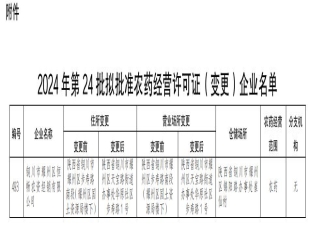 2024-07-15根据《农药管理条例》《农药经营许可管理办法》和《陕西省农药经营许可审查细则》有关规定,现将符合农药经营许可证变更条件的1家农药经营企业名单予以公示。 如对公示内容有异议,请在公示期内以实名反馈(...