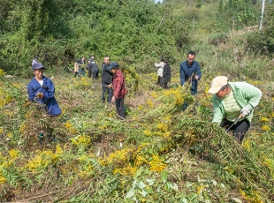 10月25日,州农业农村局和泸溪县农业农村局在该县浦市镇麻溪口村开展“加拿大一枝黄花”铲除联合行动。 当天,执法人员深入到麻溪口村组织当地的村民采取砍割、深挖清根等办...