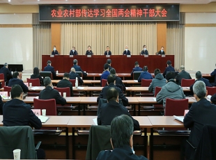 2022-03-213月16日,农业农村部召开干部大会暨部党组理论学习中心组(扩大)学习会,传达学习习近平总书记参加全国两会有关团组会议时的重要讲话和全国两会精神,中央农办主任,农业农村部党组书记、部长唐仁健...