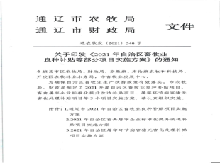 2021-11-16科尔沁区、开鲁县、科左中旗、科左后旗和扎鲁特旗农牧局,奈曼旗、库伦旗农牧和科技局: 根据内蒙古自治区农牧厅财政厅《关于印发2021年部分中央财政专项转移支付项目实施方案的通知》(内农牧计财发〔2...